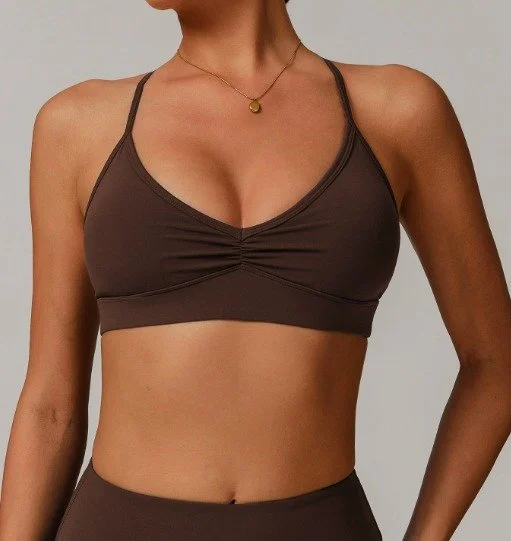 Featuring a ruched design with a supportive underband, this bra enhances your bust line while offering built-in support for low-impact activities. Soft, breathable fabric ensures all-day wearability, whether you’re hitting the mat or relaxing in style.